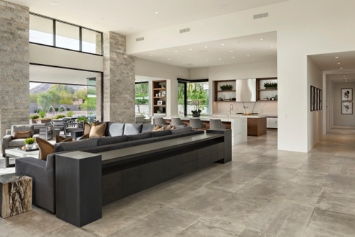 Maximizing the 5,652 sq ft, a seamless connection of interior and exterior spaces through pocketing glass doors extends public spaces to the outdoors and highlights the fantastic Camelback Mountain views.